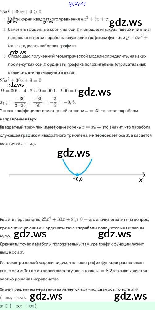 Готовый и полный ответ к §37. Решение квадратных неравенств - Алгебре 8 класс Мордкович Задачник Базовый уровень ФГОС