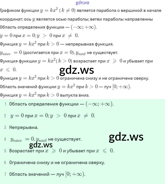 Готовый и полный ответ к §19. Функция y=kx^2, её свойства и график - Алгебре 8 класс Мордкович Учебник Базовый уровень ФГОС