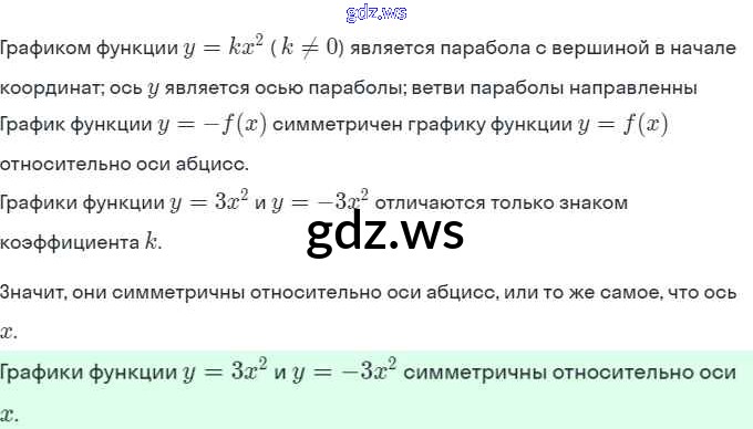 Готовый и полный ответ к §19. Функция y=kx^2, её свойства и график - Алгебре 8 класс Мордкович Учебник Базовый уровень ФГОС