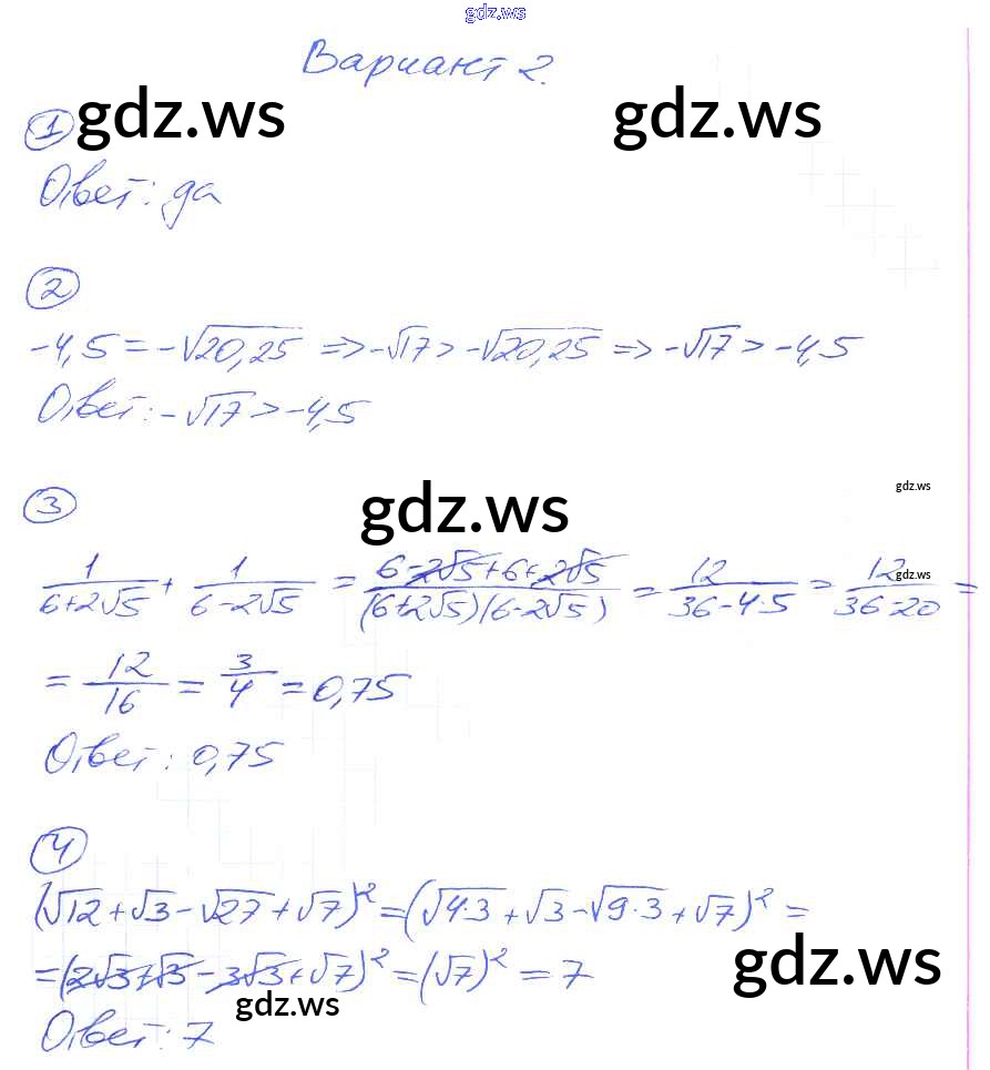 Готовый и полный ответ к СР-11. Иррациональные числа Самостоятельные работы - Алгебре 8 класс Попов Дидактические материалы УМК ФГОС