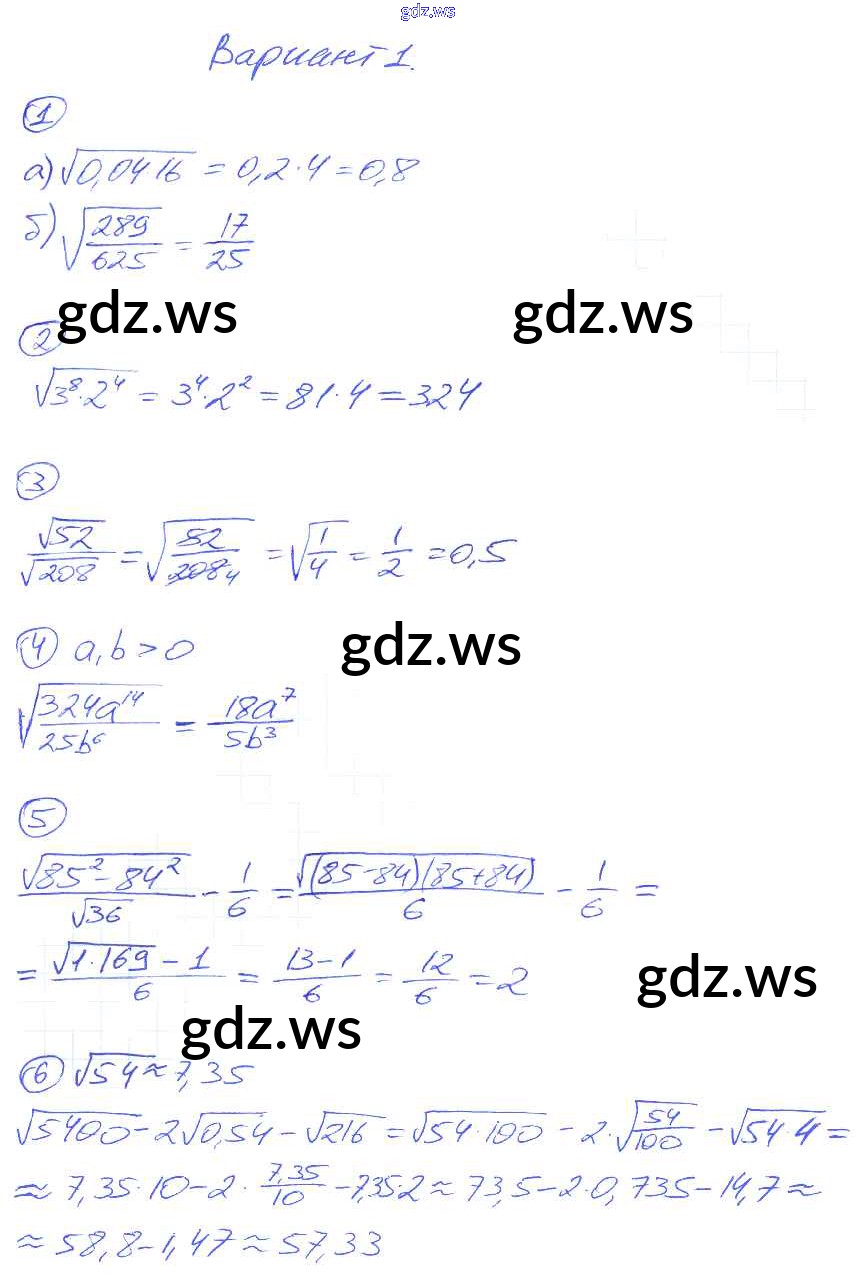 Готовый ответ СР-14. Свойства квадратных корней Самостоятельные работы - Алгебре 8 класс Попов Дидактические материалы УМК ФГОС