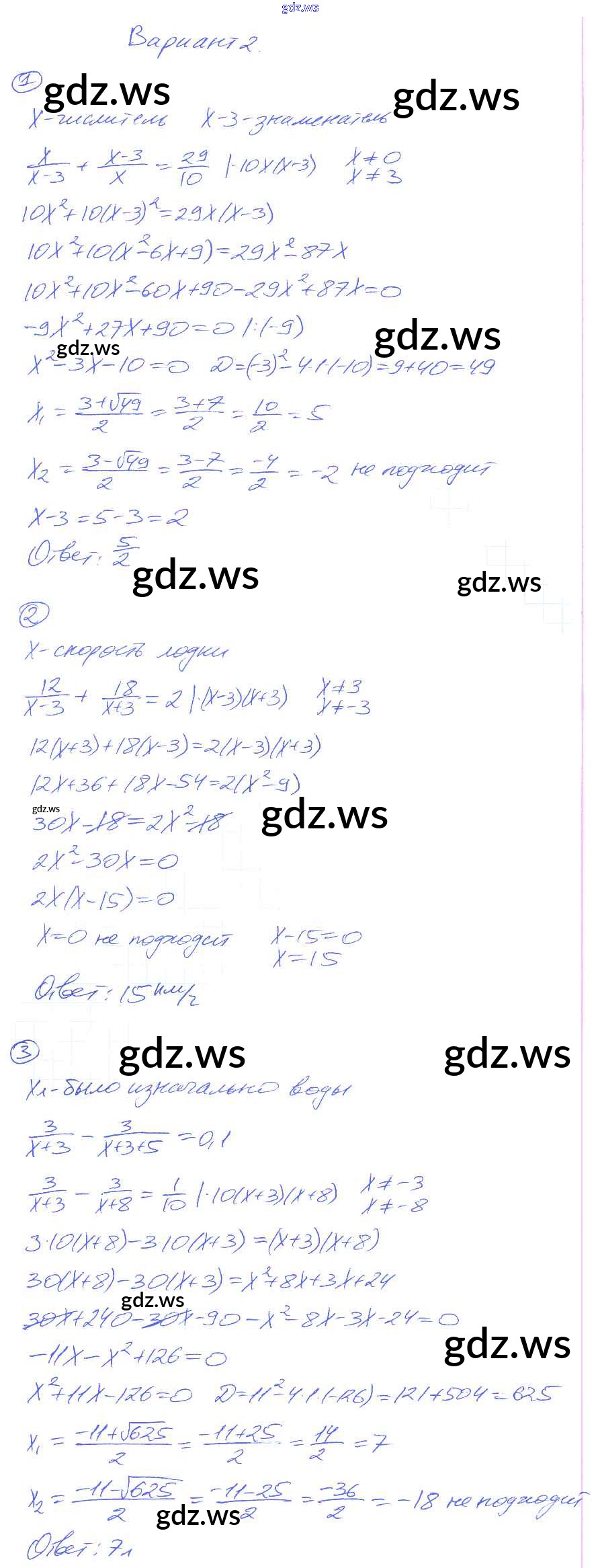 Готовый и полный ответ к СР-27. Рациональные уравнения как математические модели реальных ситуаций Самостоятельные работы - Алгебре 8 класс Попов Дидактические материалы УМК ФГОС