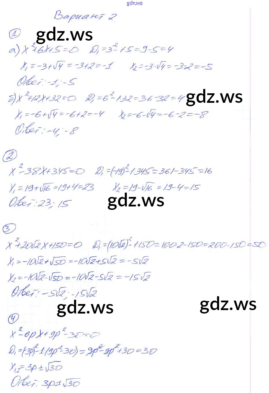 КР-4. Квадратные уравнения
