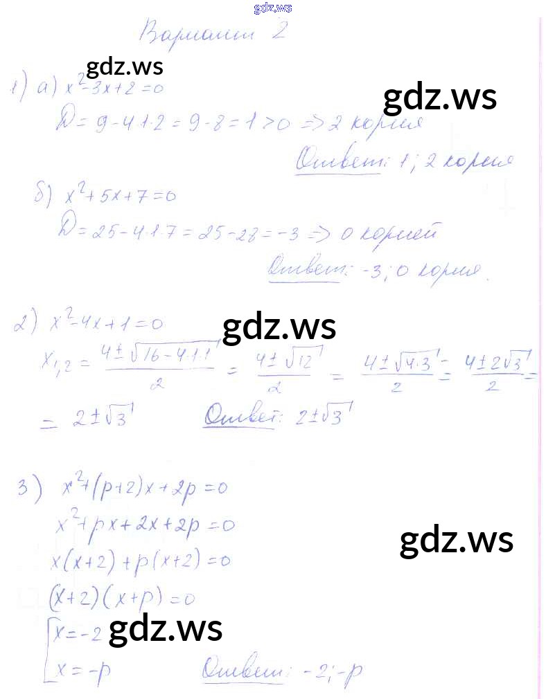 Готовый и полный ответ к СР-24. Варианты Самостоятельные работы - Алгебре 8 класс Попов Контрольные и самостоятельные работы УМК ФГОС