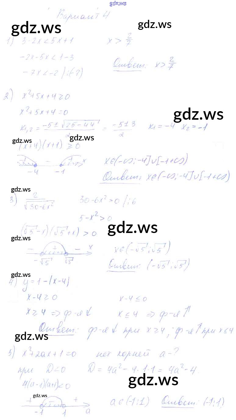 Готовый и полный ответ к КР-5. Варианты Контрольные работы - Алгебре 8 класс Попов Контрольные и самостоятельные работы УМК ФГОС