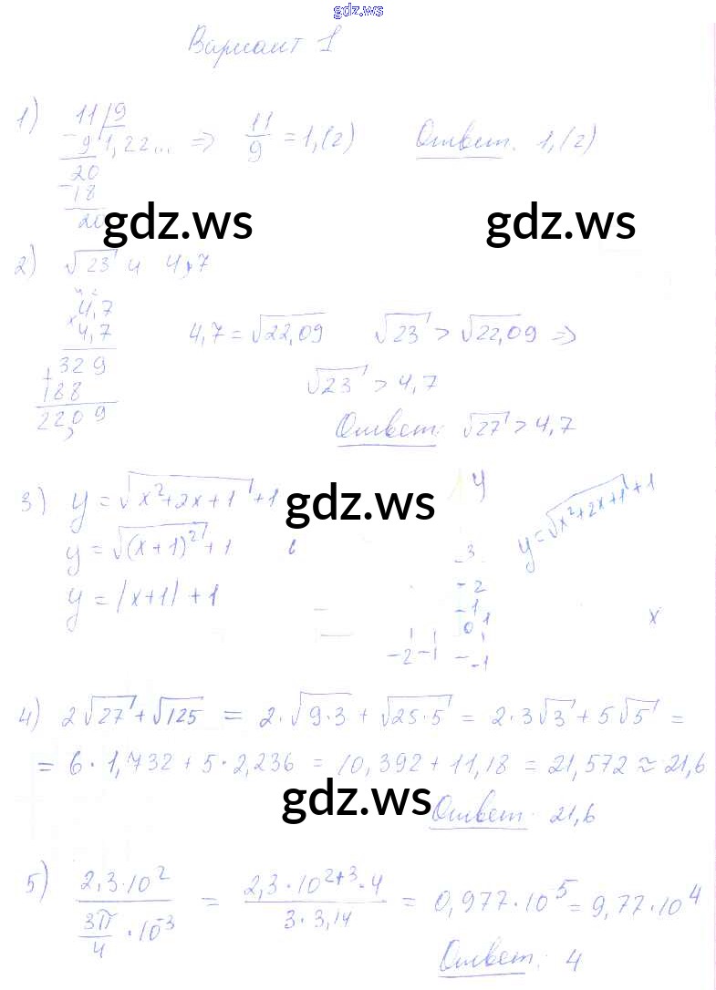 Готовый и полный ответ к КР-6. Варианты Контрольные работы - Алгебре 8 класс Попов Контрольные и самостоятельные работы УМК ФГОС