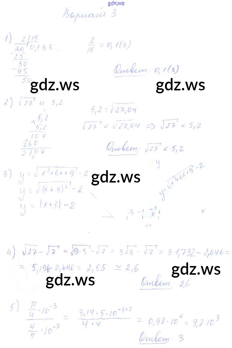 Готовый и полный ответ к КР-6. Варианты Контрольные работы - Алгебре 8 класс Попов Контрольные и самостоятельные работы УМК ФГОС