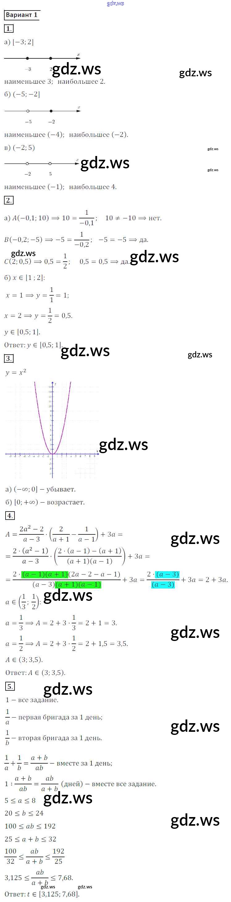Готовый и полный ответ к КР №1 Контрольные работы - Алгебре 8 класс Потапов Дидактические материалы МГУ - школе ФГОС