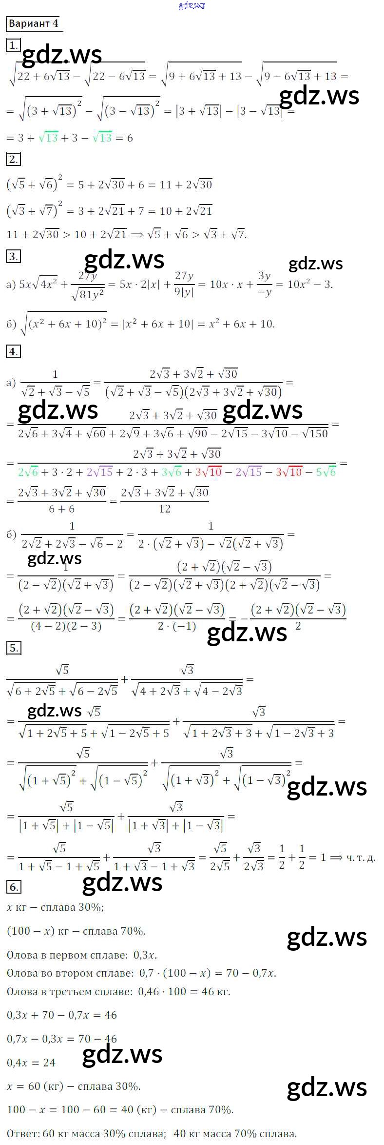 СР №4. Преобразование выражений, содержащих квадратные корни