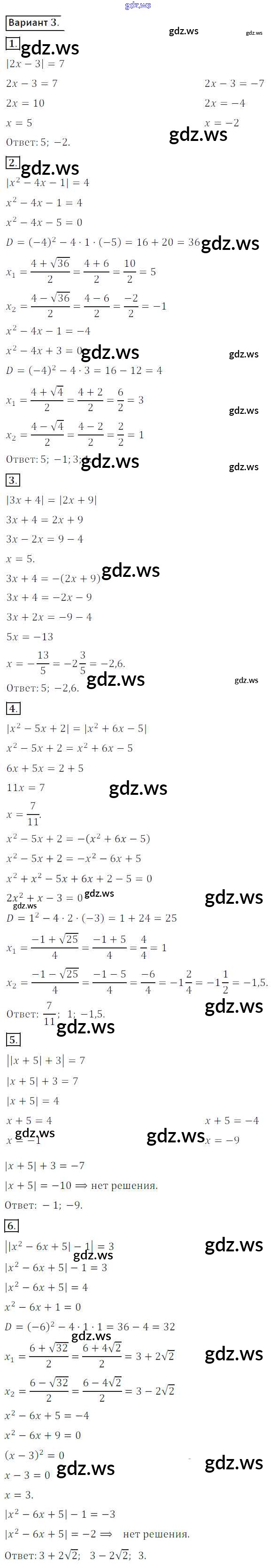 Готовый и полный ответ к СР №14. Уравнения, содержащие модули Самостоятельные работы - Алгебре 8 класс Потапов Дидактические материалы МГУ - школе ФГОС