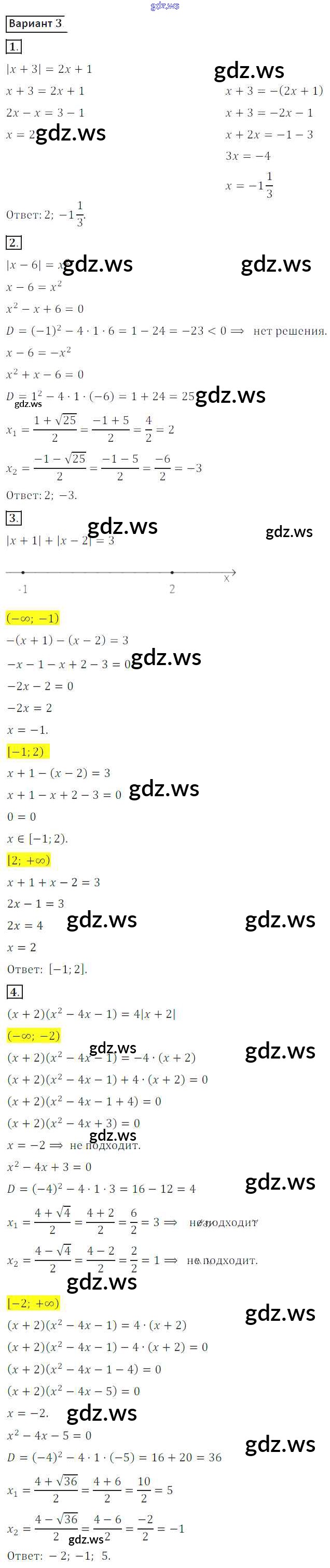Готовый и полный ответ к СР №19. Уравнения, содержащие модули Самостоятельные работы - Алгебре 8 класс Потапов Дидактические материалы МГУ - школе ФГОС