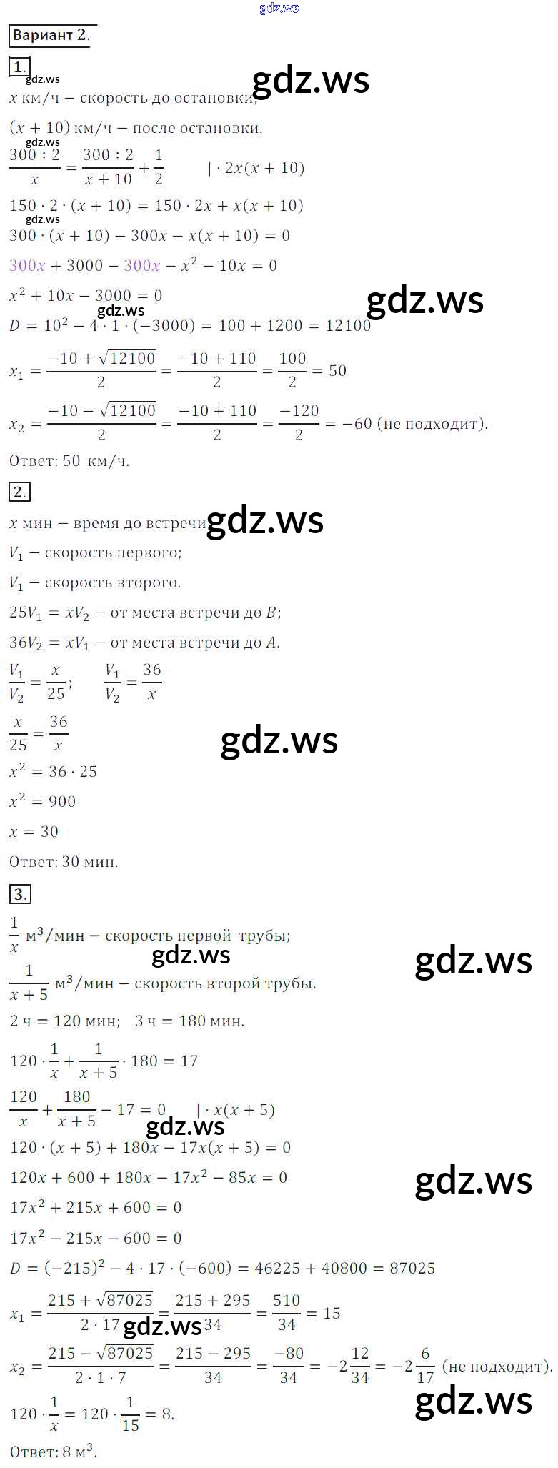 Готовый и полный ответ к СР №9. Решение задач при помощи рациональных уравнений Самостоятельные работы - Алгебре 8 класс Потапов Дидактические материалы МГУ - школе ФГОС