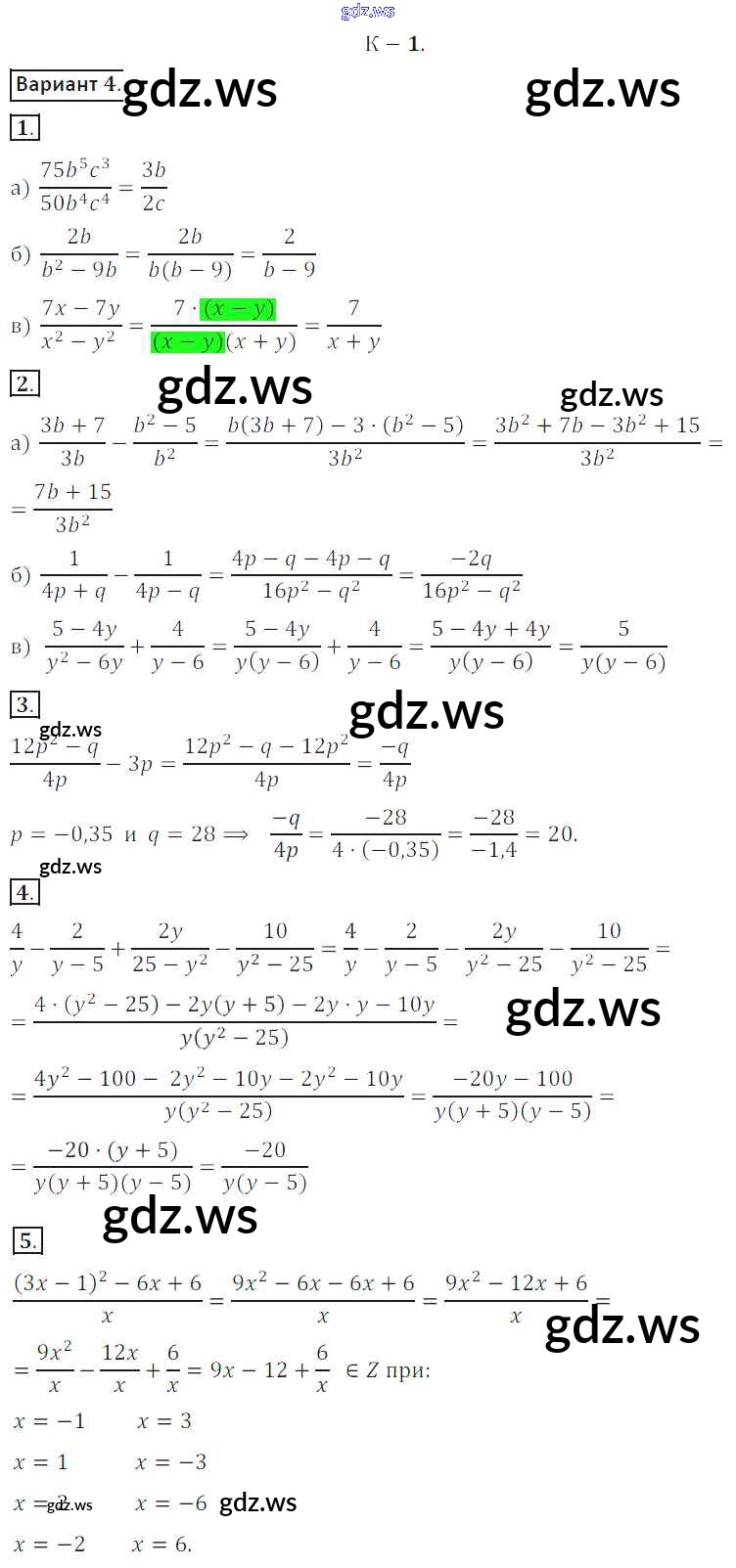 Готовый ответ КР №1 Контрольные работы - Алгебре 8 класс Жохов Дидактические материалы ФГОС