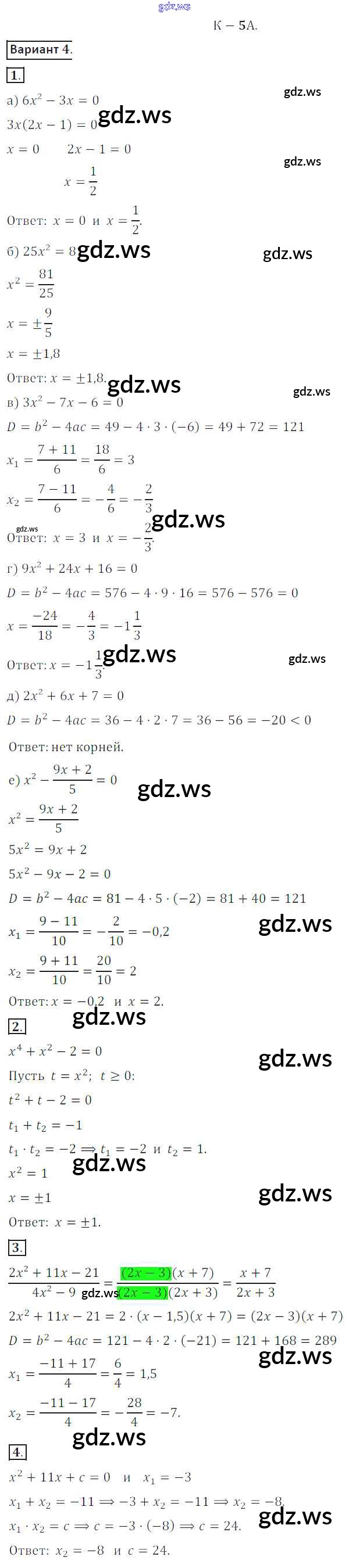 Готовый и полный ответ к КР №5A Контрольные работы - Алгебре 8 класс Жохов Дидактические материалы ФГОС