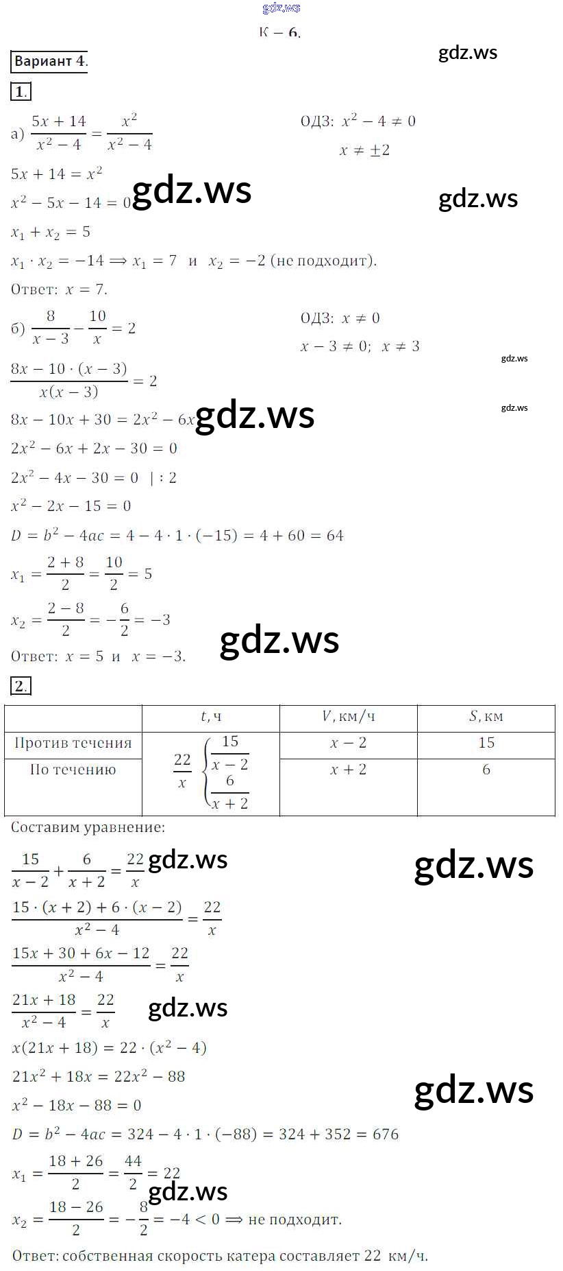 Готовый и полный ответ к КР №6 Контрольные работы - Алгебре 8 класс Жохов Дидактические материалы ФГОС