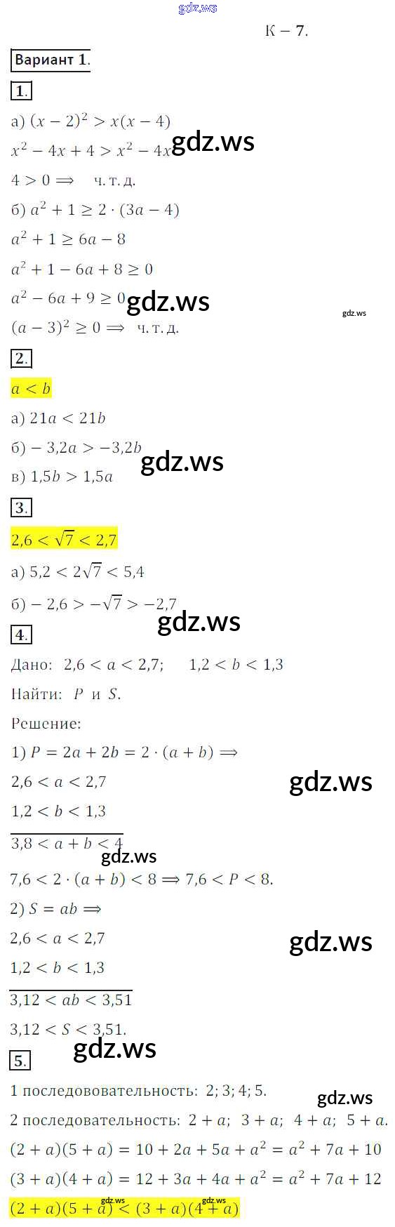 Готовый ответ КР №7 Контрольные работы - Алгебре 8 класс Жохов Дидактические материалы ФГОС