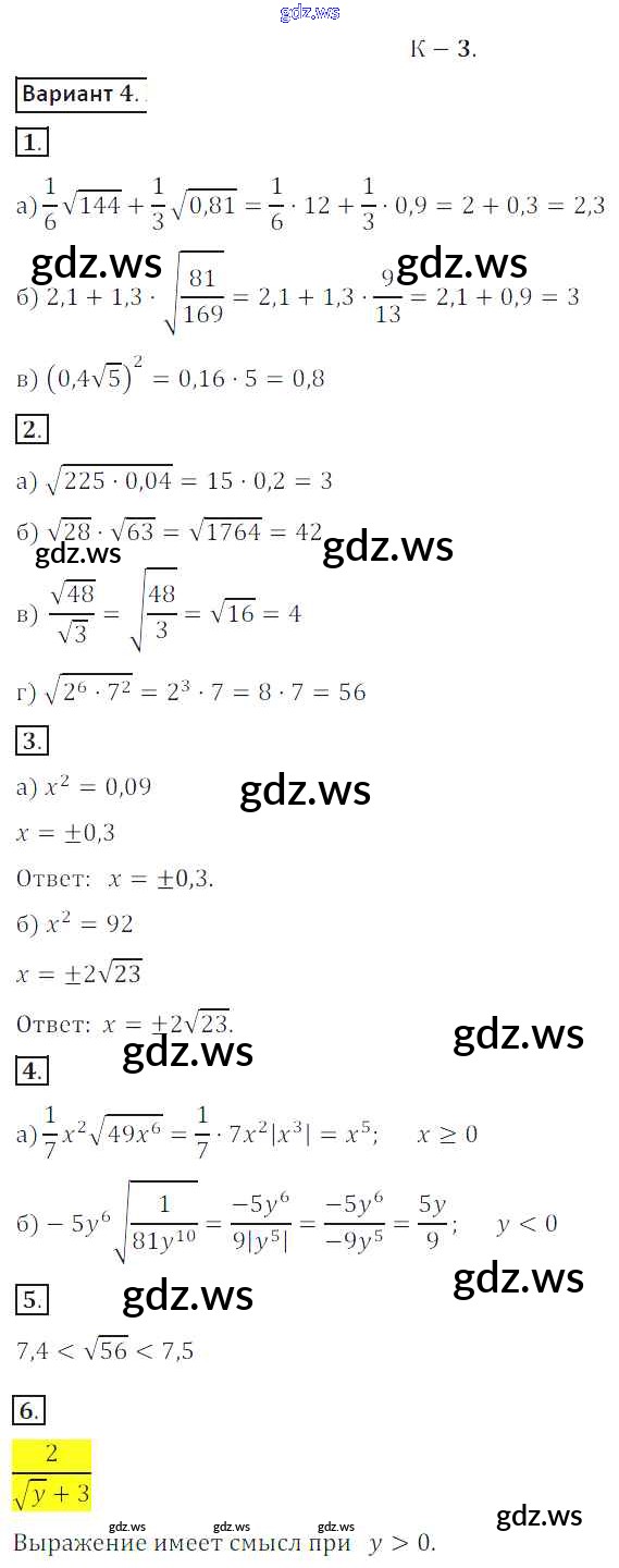 Готовый и полный ответ к КР №3 Контрольные работы - Алгебре 8 класс Жохов Дидактические материалы ФГОС