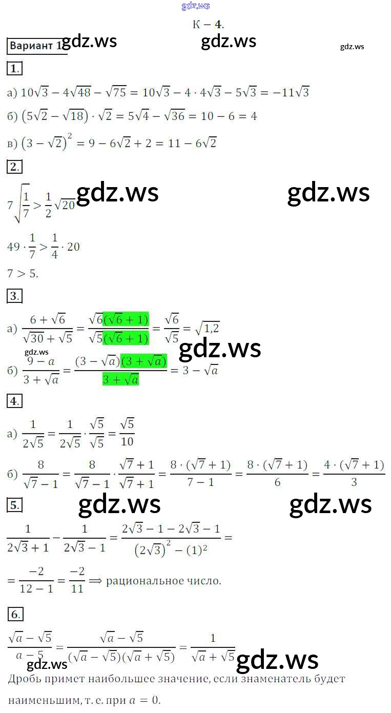 Готовый и полный ответ к КР №4 Контрольные работы - Алгебре 8 класс Жохов Дидактические материалы ФГОС