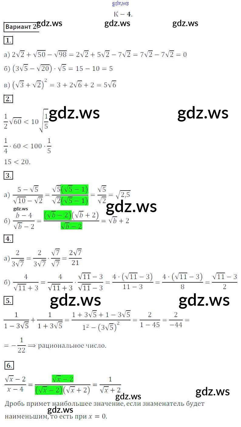 Готовый и полный ответ к КР №4 Контрольные работы - Алгебре 8 класс Жохов Дидактические материалы ФГОС