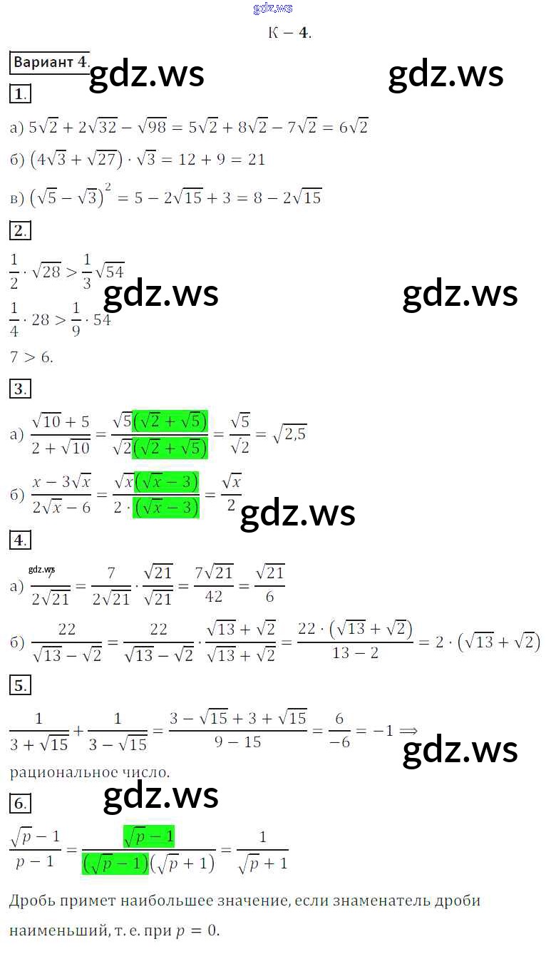 Готовый и полный ответ к КР №4 Контрольные работы - Алгебре 8 класс Жохов Дидактические материалы ФГОС