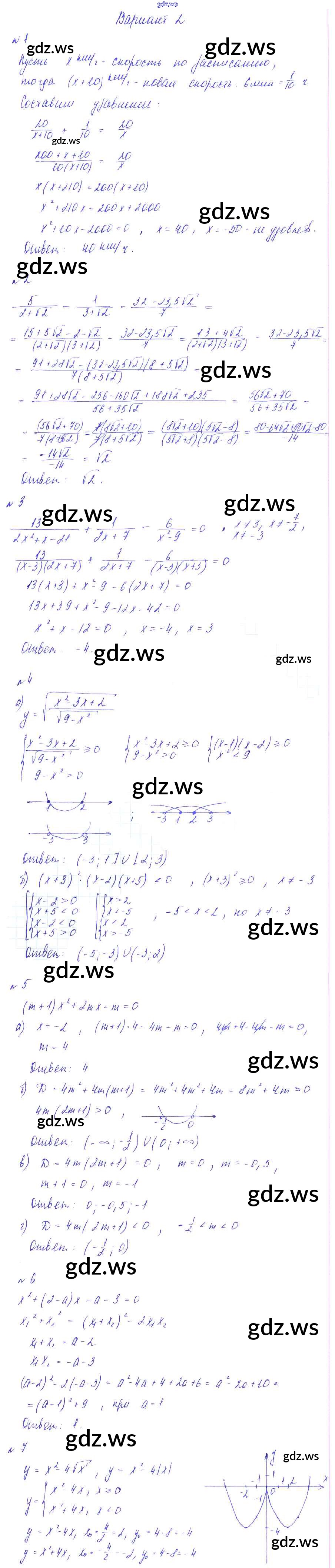 Готовый ответ КР №6. Итоговая. Варианты Контрольные работы - Алгебре 8 класс Зив Дидактические материалы ФГОС