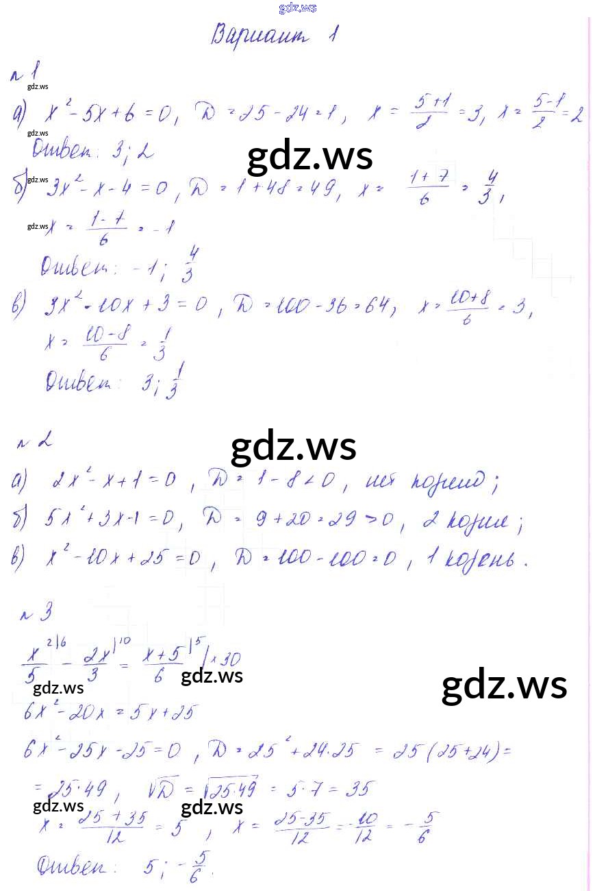 Готовый и полный ответ к СР №10. Решение квадратных уравнений Самостоятельные работы - Алгебре 8 класс Зив Дидактические материалы ФГОС