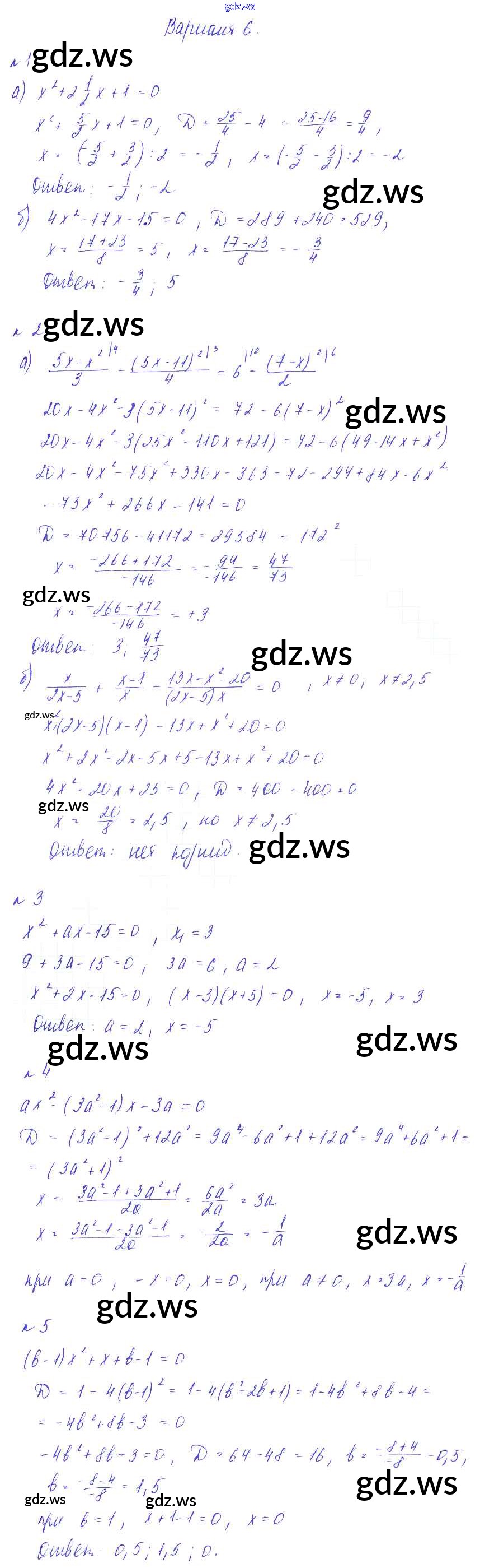 Готовый и полный ответ к СР №10. Решение квадратных уравнений Самостоятельные работы - Алгебре 8 класс Зив Дидактические материалы ФГОС