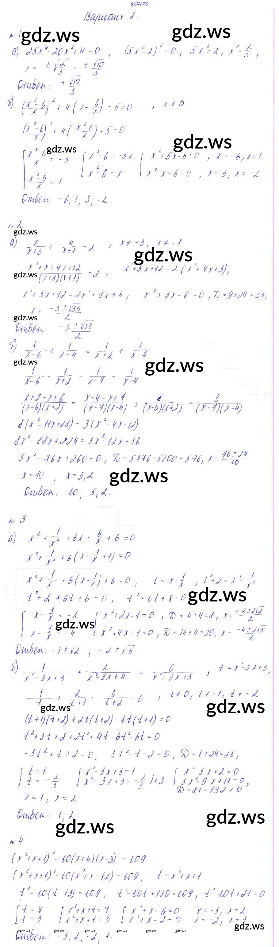 Готовый и полный ответ к СР №12. Уравнения, сводящиеся к квадратным Самостоятельные работы - Алгебре 8 класс Зив Дидактические материалы ФГОС