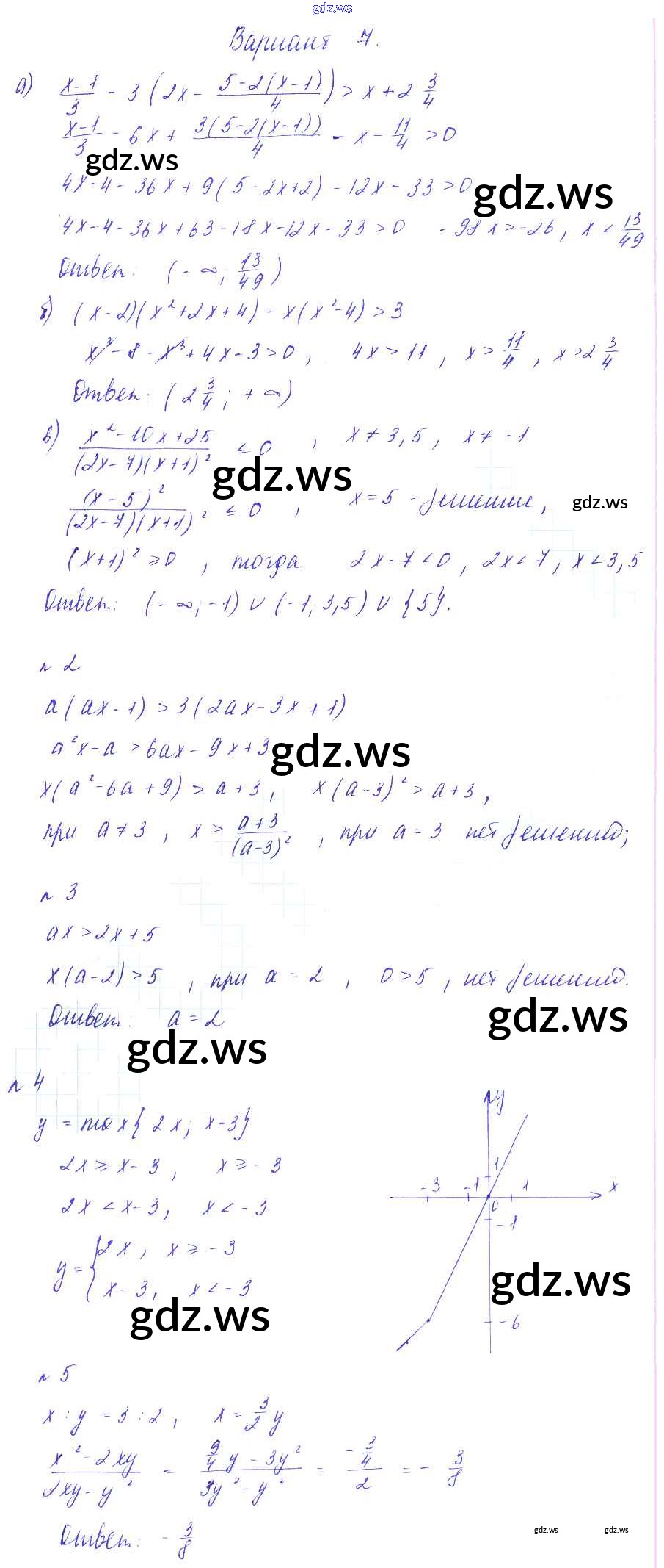 Готовый ответ СР №3. Решение неравенств. Числовые промежутки Самостоятельные работы - Алгебре 8 класс Зив Дидактические материалы ФГОС
