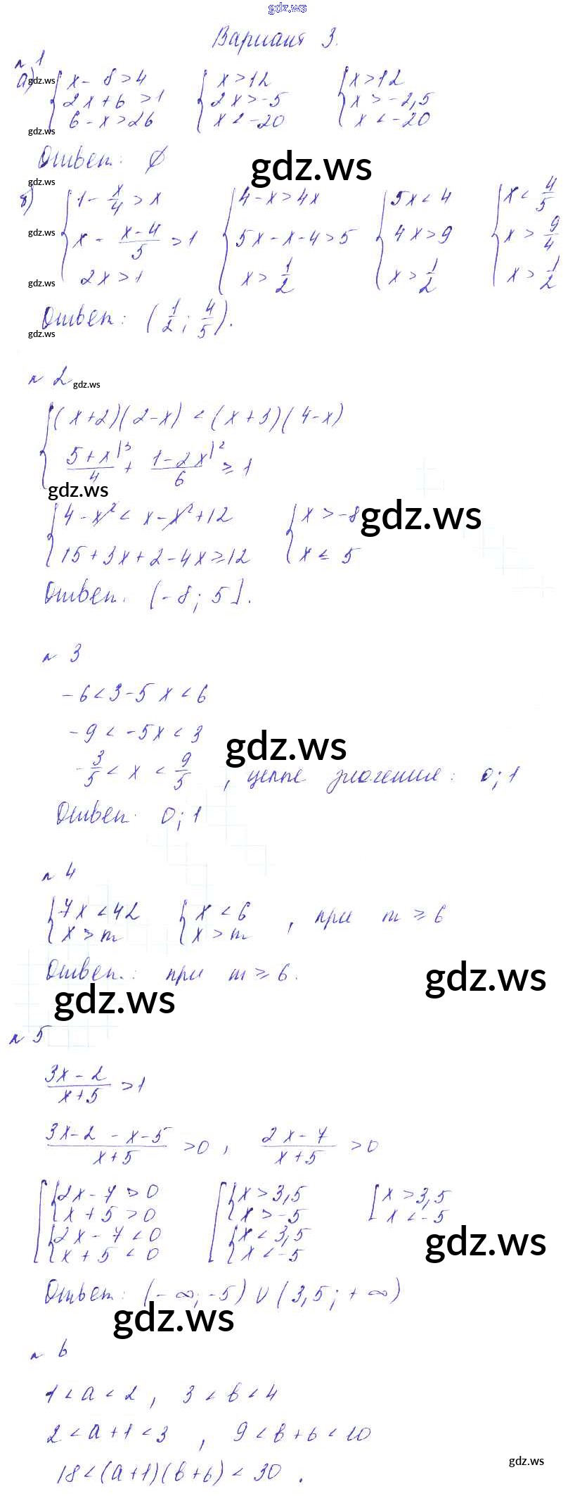 Готовый и полный ответ к СР №4. Системы неравенств Самостоятельные работы - Алгебре 8 класс Зив Дидактические материалы ФГОС