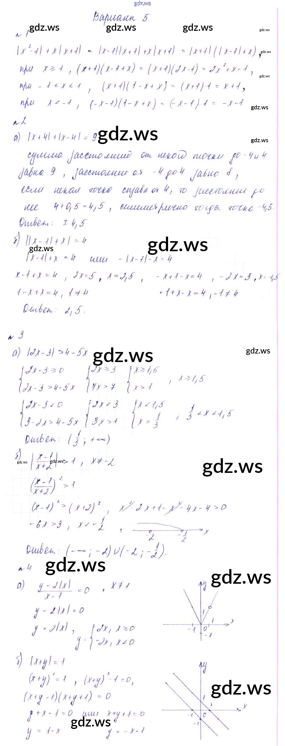Готовый ответ СР №5.Модуль числа. Уравнения и неравенства, содержащие модуль Самостоятельные работы - Алгебре 8 класс Зив Дидактические материалы ФГОС