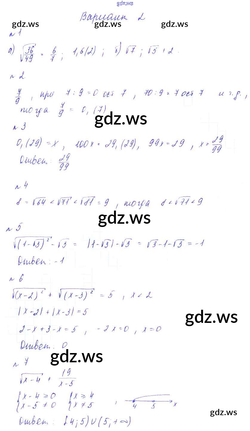 Готовый и полный ответ к СР №6. Действительные числа. Арифметический квадратный корень Самостоятельные работы - Алгебре 8 класс Зив Дидактические материалы ФГОС