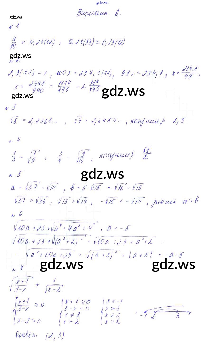 Готовый и полный ответ к СР №6. Действительные числа. Арифметический квадратный корень Самостоятельные работы - Алгебре 8 класс Зив Дидактические материалы ФГОС