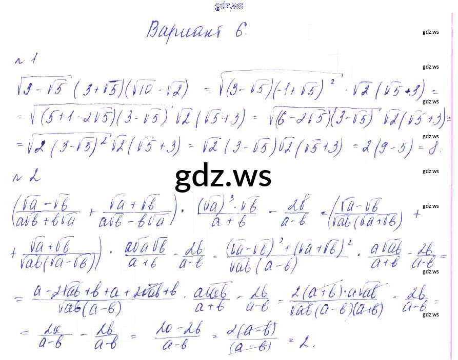 Готовый ответ СР №8. Упражнения на все действия с арифметическими корнями Самостоятельные работы - Алгебре 8 класс Зив Дидактические материалы ФГОС