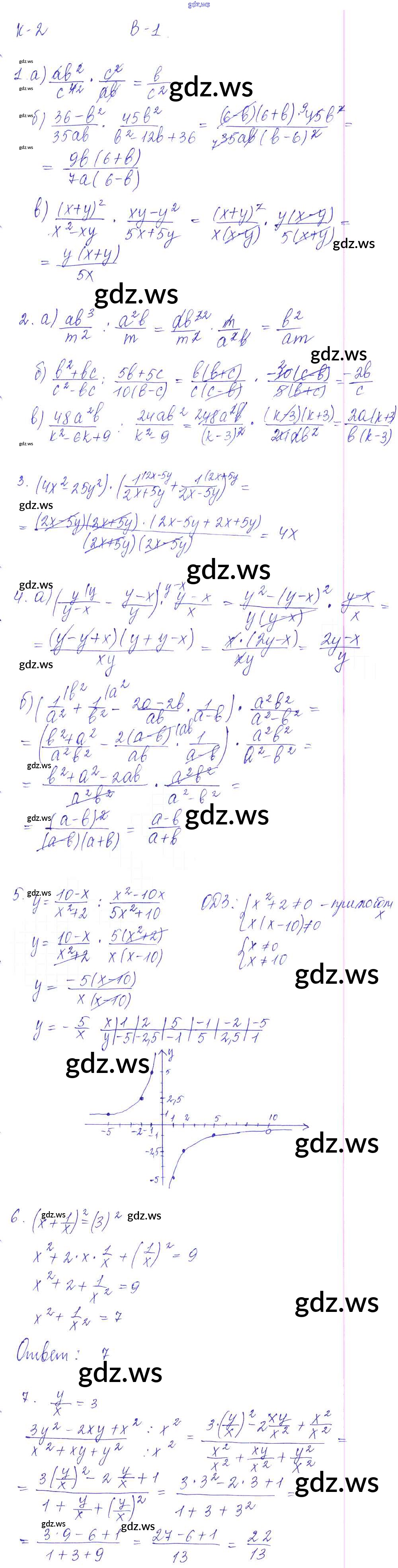 Готовый и полный ответ к КР-2. Умножение и деление, совместные действия с алгебраическими дробями Контрольные работы - Алгебре 8 класс Звавич Дидактические материалы УМК ФГОС