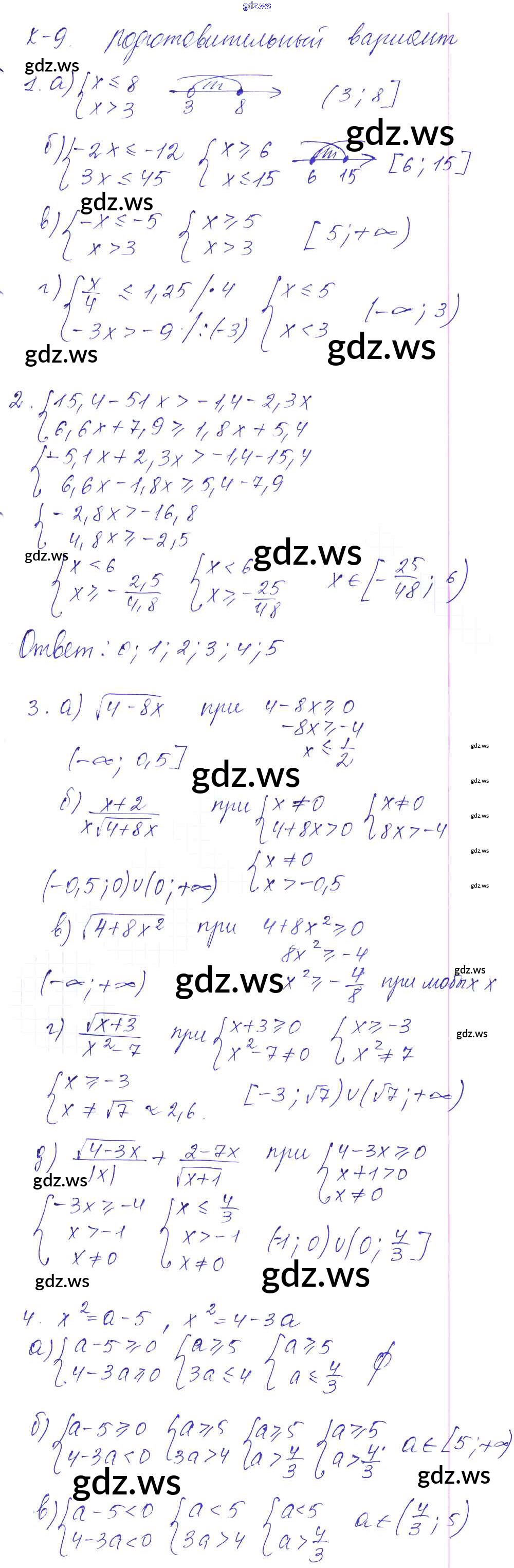 Готовый и полный ответ к КР-9. Системы линейных неравенств Контрольные работы - Алгебре 8 класс Звавич Дидактические материалы УМК ФГОС