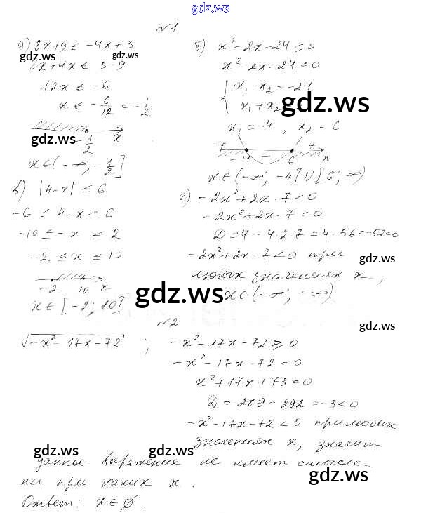 Готовый и полный ответ к СР-1. Линейные и квадратные неравенства Тема 1. Неравенства и системы неравенств - Алгебре 9 класс Александрова Самостоятельные работы Базовый уровень ФГОС