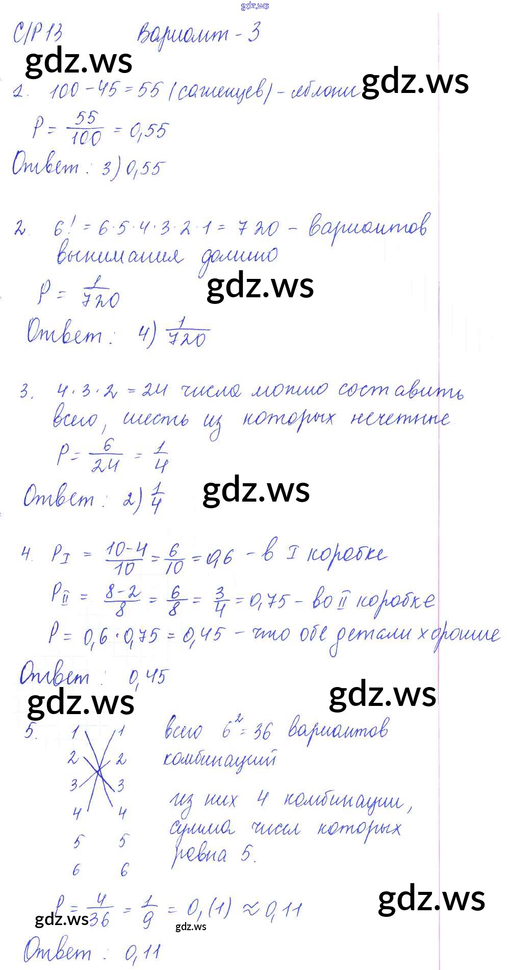 Готовый и полный ответ к СР-13. Начальные сведения из теории вероятностей Самостоятельные работы - Алгебре 9 класс Глазков Самостоятельные и контрольные работы УМК ФГОС