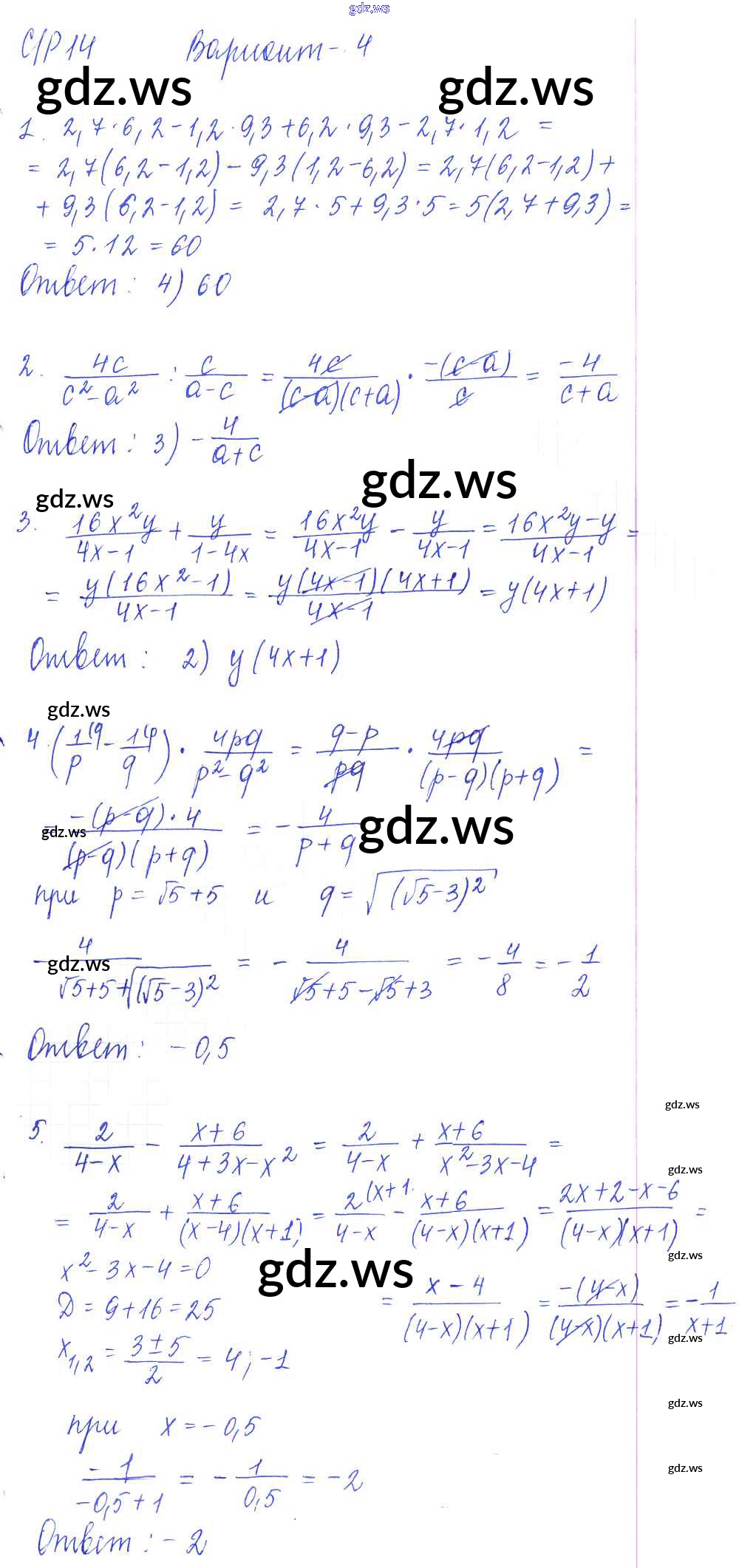 Готовый ответ СР-14. Итоговое повторение. Преобразование целых и дробных выражений Самостоятельные работы - Алгебре 9 класс Глазков Самостоятельные и контрольные работы УМК ФГОС
