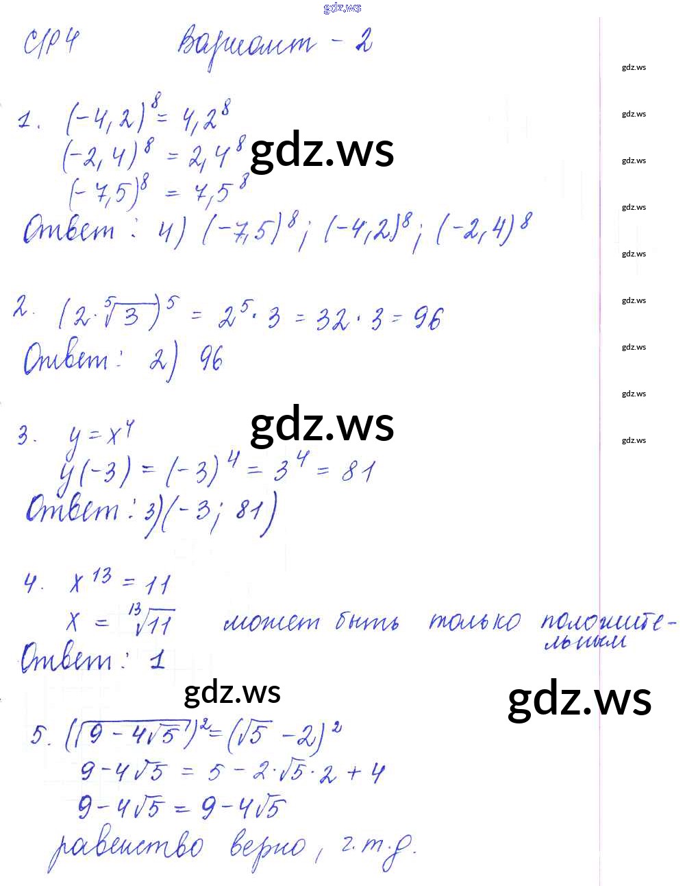 Готовый и полный ответ к СР-4. Степенная функция. Корень n-й степени Самостоятельные работы - Алгебре 9 класс Глазков Самостоятельные и контрольные работы УМК ФГОС