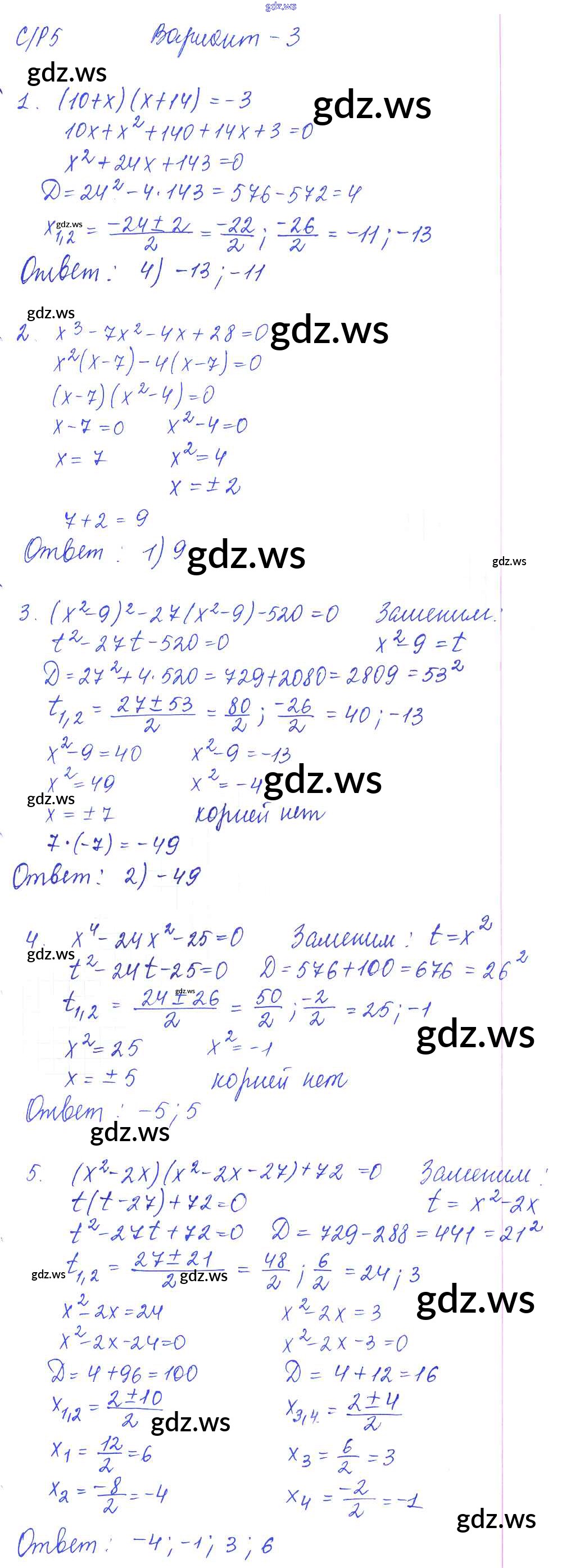 Готовый и полный ответ к СР-5. Уравнения с одной переменной Самостоятельные работы - Алгебре 9 класс Глазков Самостоятельные и контрольные работы УМК ФГОС