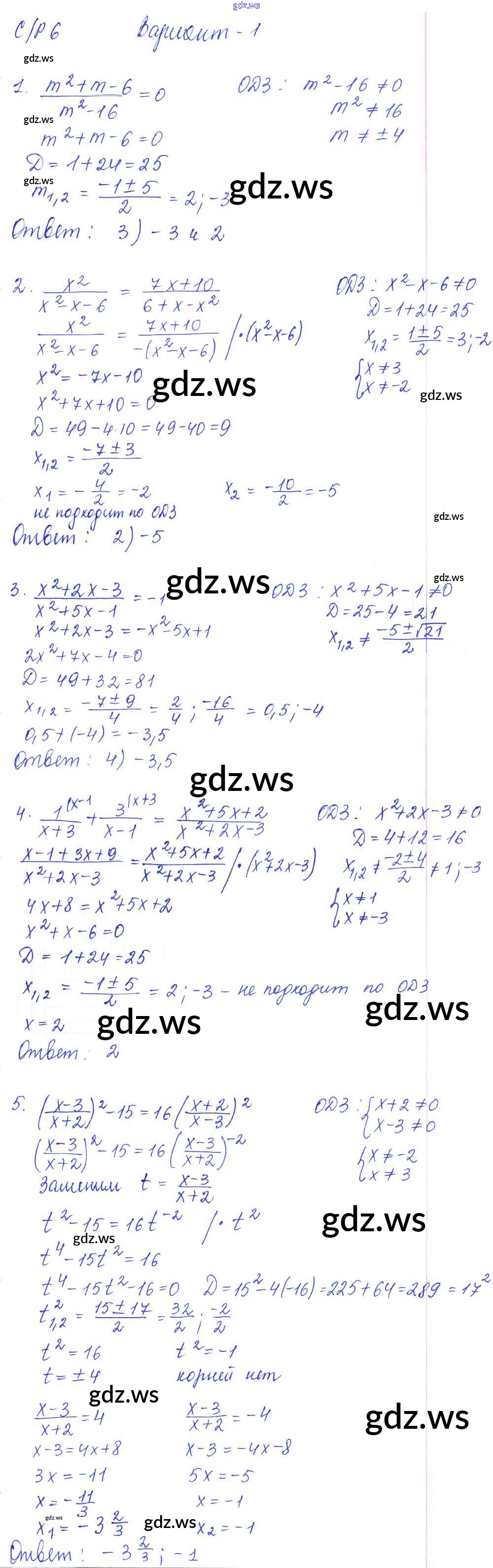 Готовый и полный ответ к СР-6. Дробные рациональные уравнения Самостоятельные работы - Алгебре 9 класс Глазков Самостоятельные и контрольные работы УМК ФГОС