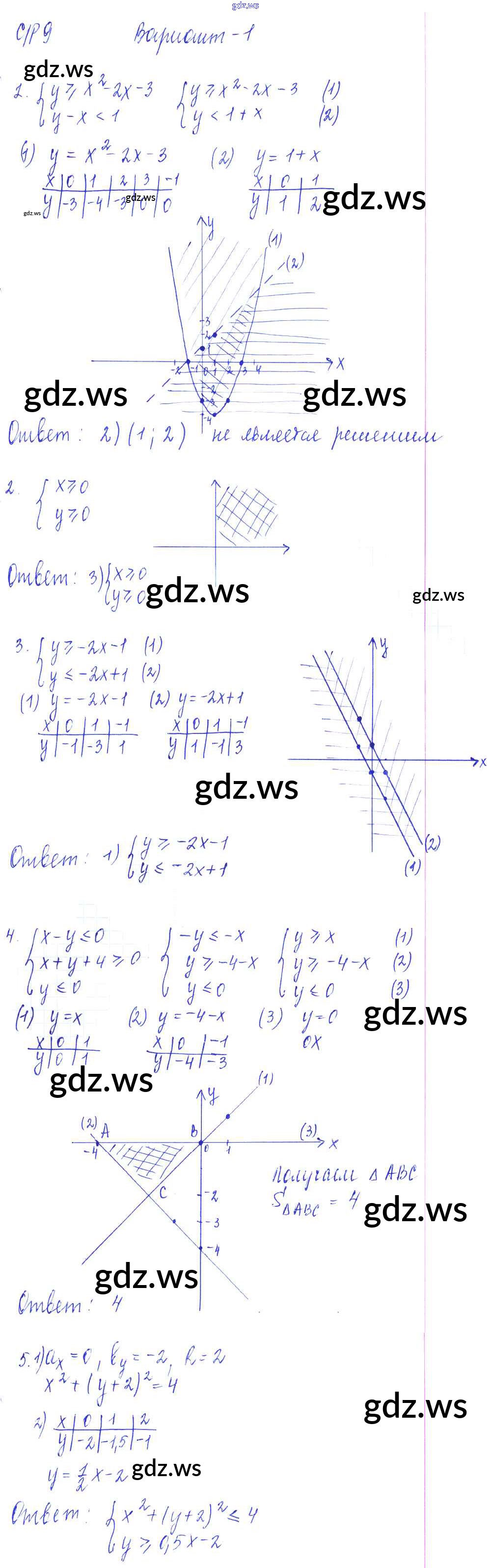 Готовый и полный ответ к СР-9. Неравенства с двумя переменными и их системы Самостоятельные работы - Алгебре 9 класс Глазков Самостоятельные и контрольные работы УМК ФГОС