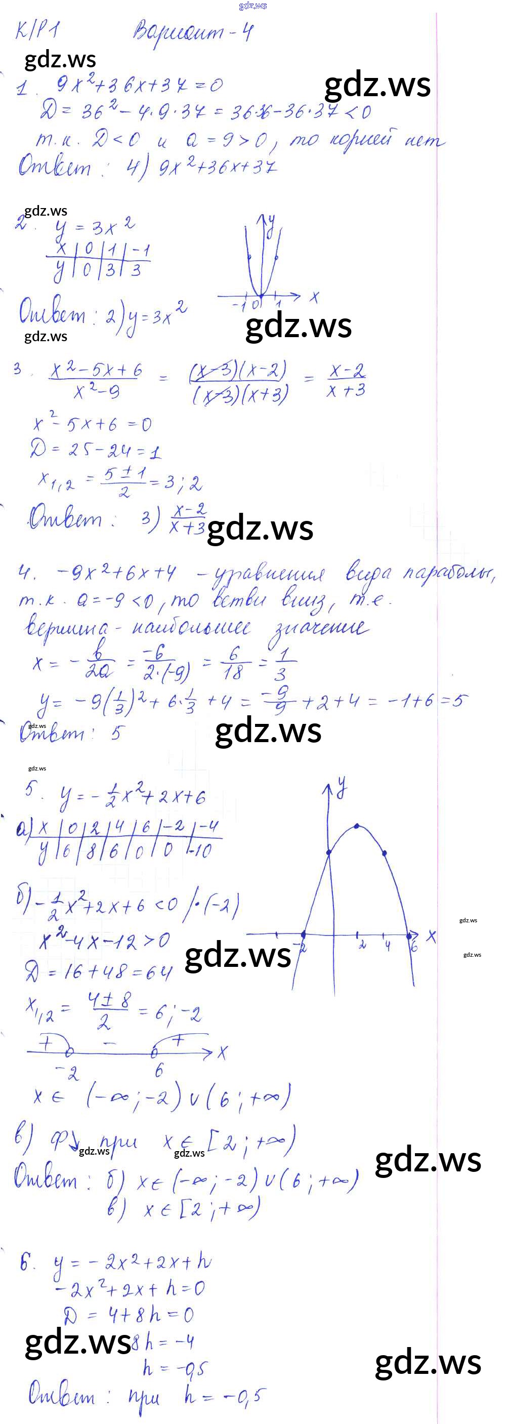 Готовый и полный ответ к КР-1. Функции и их свойства. Квадратный трехчлен. Квадратичная функция и её график Контрольные работы - Алгебре 9 класс Глазков Самостоятельные и контрольные работы УМК ФГОС