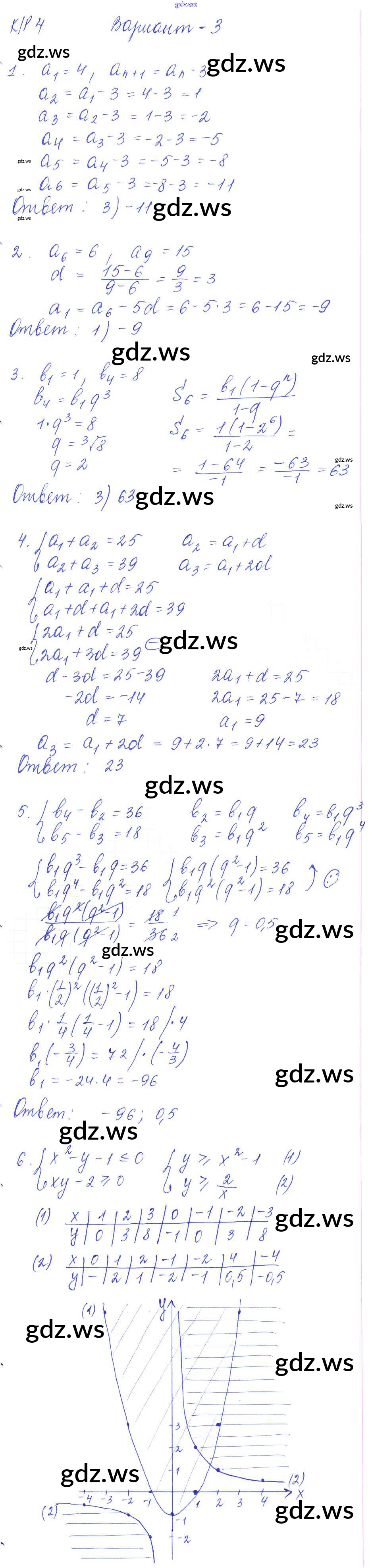КР-4. Неравенства с двумя переменными и их системы. Арифметическая и геометрическая прогрессии