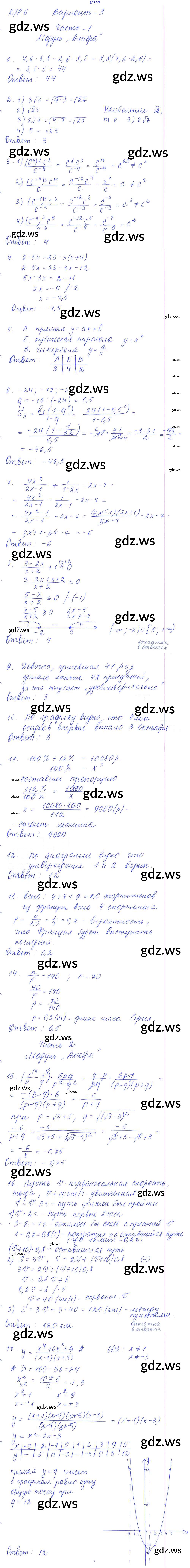 Готовый и полный ответ к КР-6. В формате ГИА Контрольные работы - Алгебре 9 класс Глазков Самостоятельные и контрольные работы УМК ФГОС