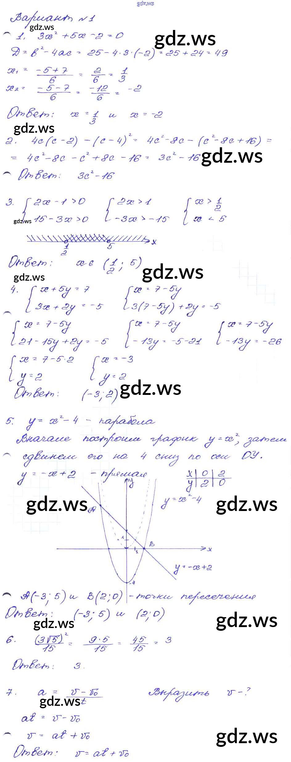 Готовый и полный ответ к Работа 2 Часть 1 - Алгебре 9 класс Кузнецова Сборник заданий ФГОС