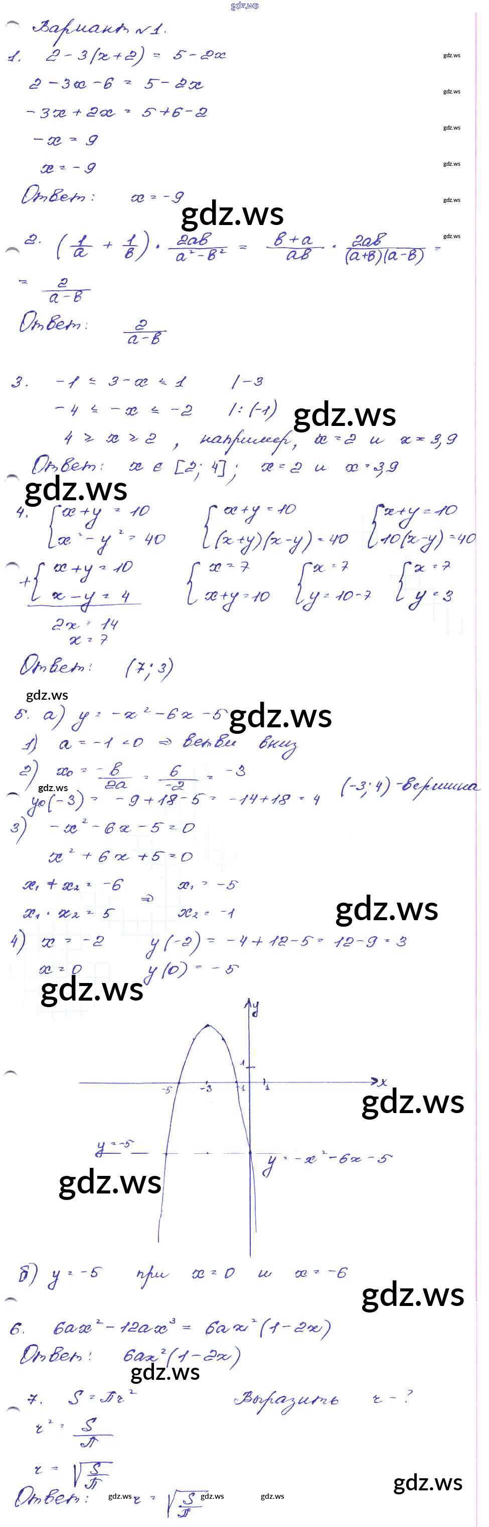 Готовый ответ Работа 16 Часть 1 - Алгебре 9 класс Кузнецова Сборник заданий ФГОС