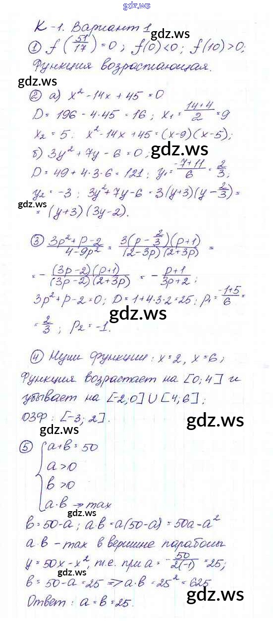 Готовый и полный ответ к КР-1 Контрольные работы - Алгебре 9 класс Макарычев Дидактические материалы ФГОС