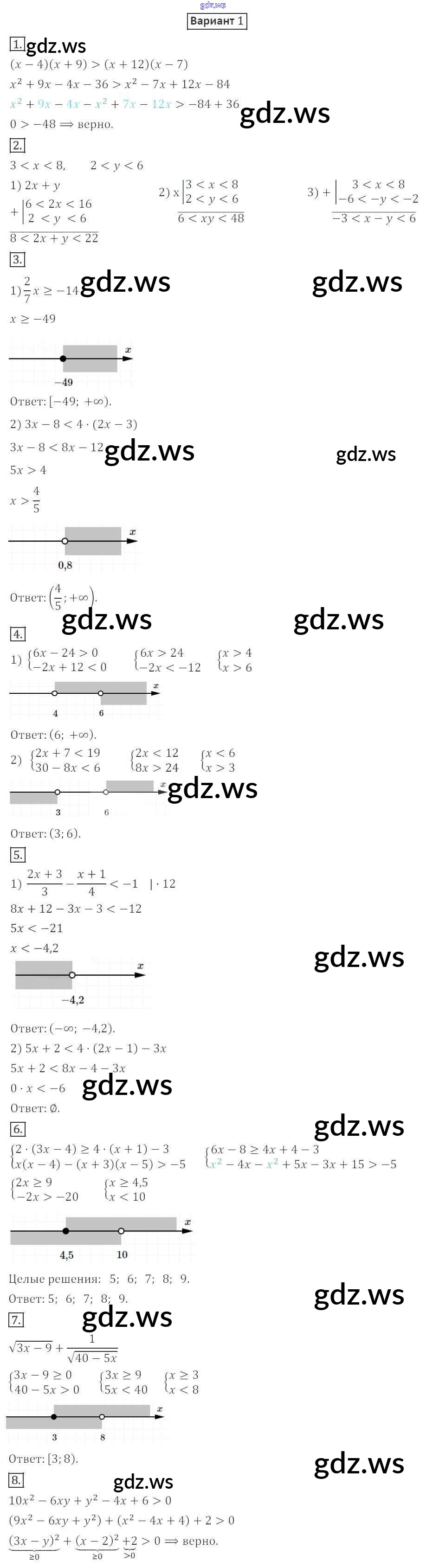 Готовый и полный ответ к КР-1 Контрольные работы - Алгебре 9 класс Мерзляк Дидактические материалы Алгоритм успеха ФГОС